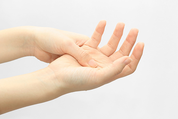 腱鞘に炎症が生じると、腱の動きが滑らかに行えなくなり、指の付け根の痛みや腫れ、熱感といった症状が現れます。